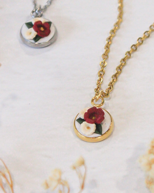 Cherry & Blush Bouquet Pendant Necklace